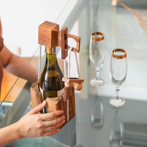 This wooden stand can hold your favorite bottle of wine, but it also has a fun brain-teaser puzzle on it to entertain your guests. The base adjusts to accommodate various bottles (including larger ones — like champagne). And once you master this puzzle, there are others to buy in the listing.