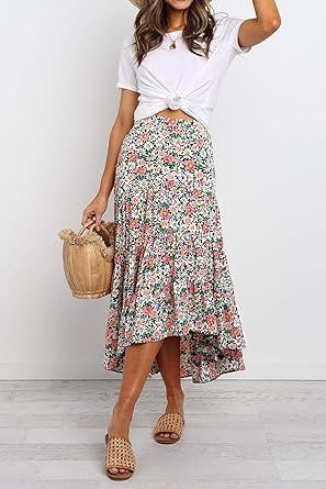 A Floral Midi Skirt With A High/Low Hem