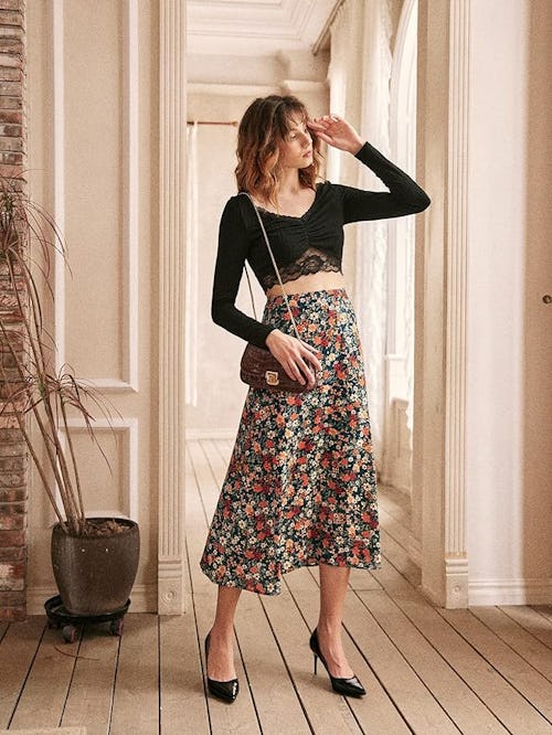Midi skirts have become a bougie wardrobe staple, and this version’s vintage-inspired floral print not only stands out — it’s also a cinch to style. The elastic-waisted, pull-on design is all-day comfy and it promises to anchor bodysuits, crop tops, and more. It can be styled for day or nighttime; you’ll reach for it constantly.