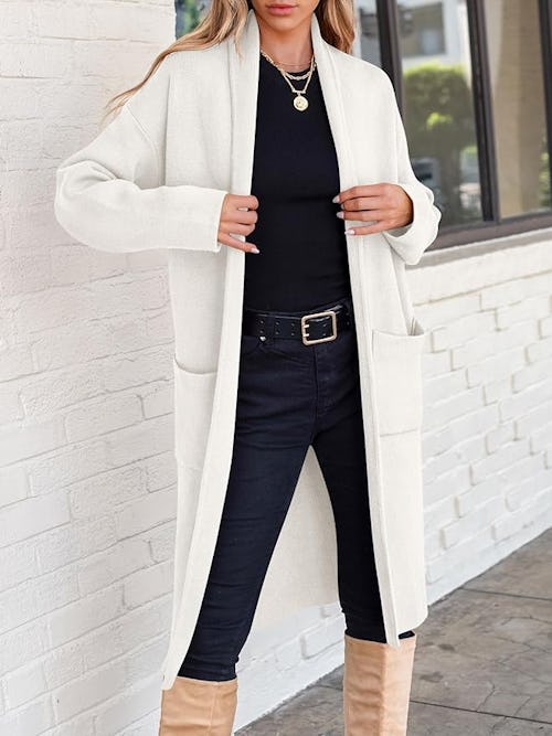 If you like a little extra coverage (but still want to look hot AF) this coatigan is your fighter. Crafted from a buttery knit, the duster features side pockets and a shawl collar. The look is giving effortless posh, and is sure to become a wardrobe standby.