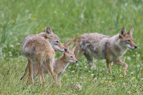 Again: yes with a large asterisk. If your cat or small dog is out and about, they might become the prey of a hungry coyote. That said, coyotes aren’t going to lure your dog to their pack (they’re clever but they’re not velociraptor clever), and they’re probably not too interested in your cat, either. Most of a coyote’s diet consists of rabbits and rodents, wild fruits, carrion, and bugs. And considering these fellas tend to hunt alone (maybe in pairs) and they only weigh about 30 to 35 pounds on average, they’re highly unlikely to go for a prey animal larger than itself, much less a fellow predator, like a dog.