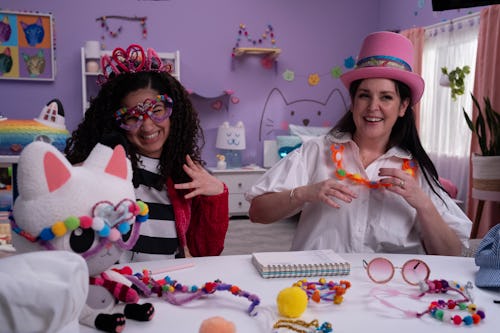 Gabby & Friends is set in the colorful and creative world that fans have all come to know and love from the popular mixed-media preschool series. So, not surprisingly, Gabby herself — aka the incredible Laila Lockhart Kraner — hosts as she invites celebrity guests to get in on all the a-meow-zing fun. Fans will see stars like Melanie Lynskey, Kate Upton, Lisa Ling, Nicky Hilton, and Constance Wu join Gabby in hands-on crafts and activities inspired by the adventures of Gabby and her iconic Gabby Cats. As fans know, this marks the first time ever that celebrities have entered Gabby’s world as themselves and not through lending their voices to new characters (like Season 10’s Marty the Party Cat, voiced by Glee star Darren Criss).