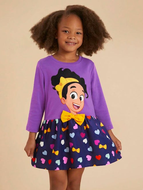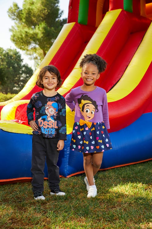 The collection combines Blippi’s signature blue and orange style with everyday practicality. Boys’ clothing is filled with active-friendly pieces like hoodies and sweaters in eye-catching colors. Printed pants (featuring dinosaurs!) make crawling under imaginary bridges or climbing onto a pretend excavator feel even cooler. For the girls, it’s all about playful flair: colorful graphic dresses, pants adorned with the sweetest orange bows, and long-sleeve tops that pair perfectly with the joyful spirit of exploration. There are also tons of Blippi accessories, like shoes, socks, and backpacks that are perfect for a family weekend trip or just a backyard treasure hunt.