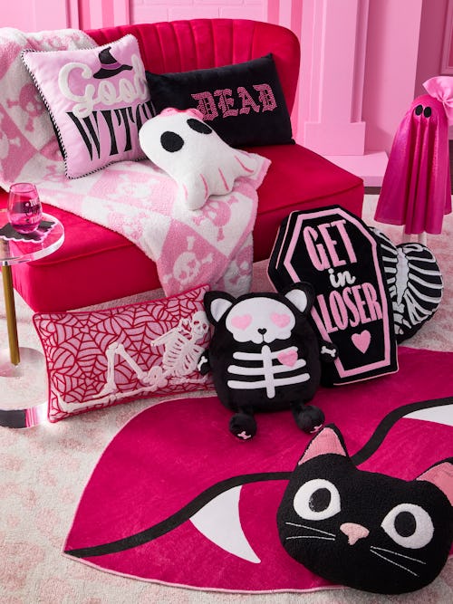Everything you need for a Haunt Girl Summer and Spooky Season. This collection, which is available online and in-stores now, answers the question “What if science could combine Wednesday Addams and Glinda the Good Witch?” Turns out the answer is perfectly pink goth glam perfection, and everything is cheeky and a little bit creepy. I’m obsessed with the coffin-shaped “Get In Loser” items.