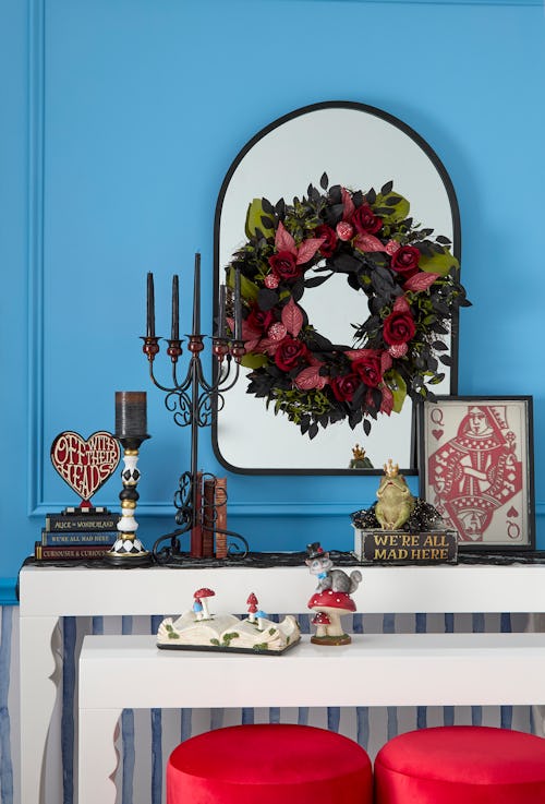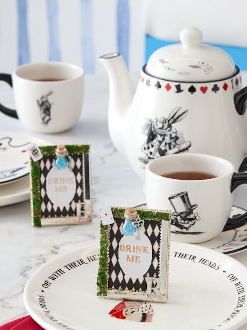 Weird whimsy abounds in this Alice in Wonderland inspired collection, available August 15. It’s a mad tea party fever dream, complete with fun details from the beloved children’s book —from cheeky rabbits, playing card motifs, and oh so many tea accessories. I’m a big fan of this otherworldly Alice painting and, truly, whomst among us doesn’t long for a flock of skeleton flamingos?