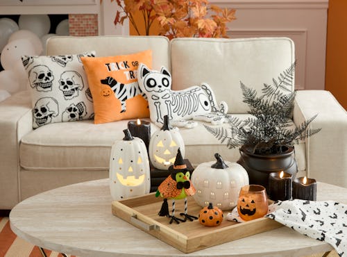 Think “Classic,” “Cute,” and “Spooky (Not Scary).” This collection, available online and in-stores now, is perfect for Halloween traditionalists who love sheet ghosts, black cats, and plenty of pumpkins. The entire collection is so sweet, but my personal favorite items include a 2’3” ghost holding a candy dish and a tabletop haunted house with LED lights in the windows.