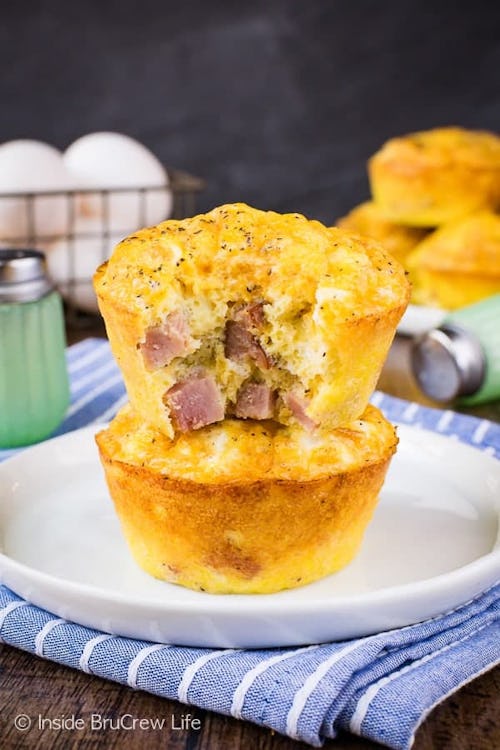 Egg muffins are always a great high protein breakfast option, but this recipe from Inside Bru Crew Life includes ham and cheese for added protein — and makes them extremely delicious. You can make a whole bunch in advance and just warm them up when you’re ready to eat. These are great for on-the-go, and also make a delicious lunch or snack — don’t feel like you can only eat them for breakfast.
