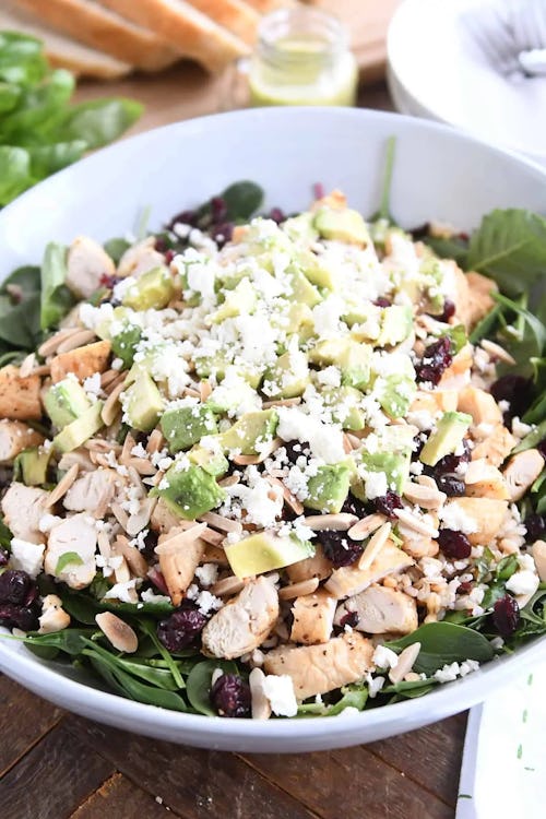 This kale and wild rice salad from Mel’s Kitchen Cafe is bright, crunchy, and full of zippy flavors — but it also has 16 grams of protein in a serving. You could easily make that number higher by adding in extra grilled chicken or almonds, but no matter what, this salad should be in your meal prep rotation.