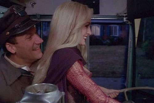 During the short bus drive that the Sanderson Sisters take, Sarah sits on the bus driver’s lap — which, as an adult, you can see he enjoys a little too much. When they go to exit the bus, he laments that he didn’t get her phone number and asks if she wants his route schedule. “Oh, thou wouldst hate me in the morning,” she replies.