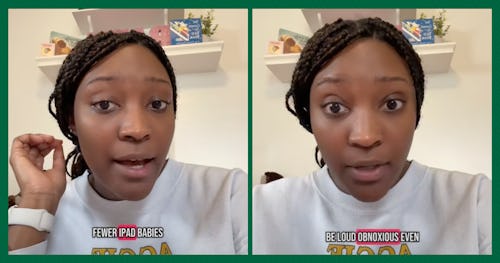 “And I know, y’all are going to be like ‘Kids should learn how to act in public before you take them out in public,’” she continues. “But kids can’t learn how to behave in public unless they’re in public getting those experiences. And that learning curve is going to be inconvenient and uncomfortable for you.”