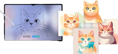 And yet, there they are, on the couch, drawing together and laughing like old buddies whose age difference is no big thing. The peacemaker: Samsung’s new AI-powered app, “Sketch to Image.” It’s a very simple app, all things told, in which you start a new sketch on a tablet or phone (available on a host of phones and tablets and computers including the Samsung Galaxy Z Flip 6, Z Fold 6, and the Samsung Galaxy Tab S10+, which we used), do a line drawing, and generate an image with one of five presets — Illustration, Watercolor, Pop Art, Sketch, or 3D cartoon. Like that, the AI waves its magic wand and … the results are actually pretty impressive.