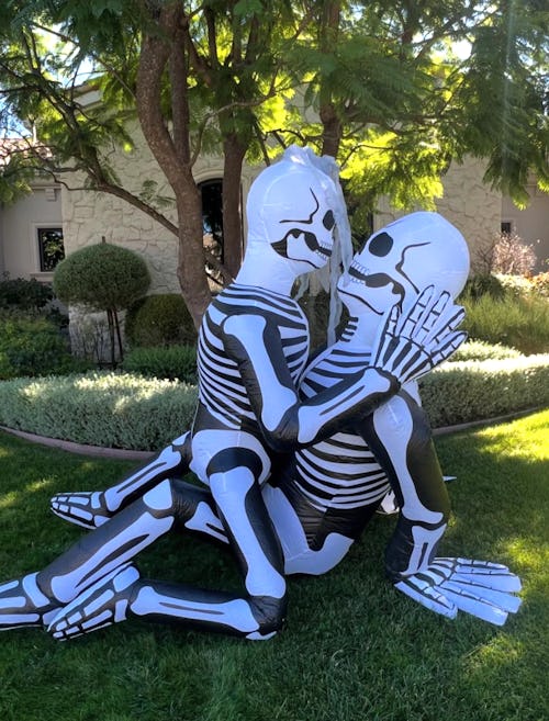 This week, the couple gained some attention for Kardashian’s Instagram post showing off their chosen yard inflatables: two skeletons, uh, boning.