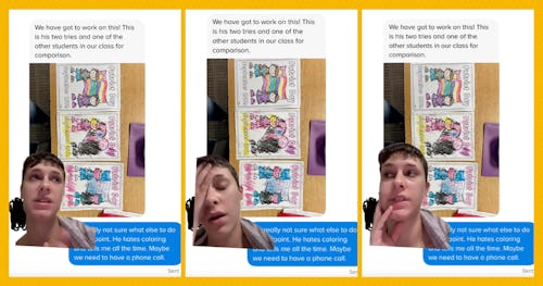 “Kindergarten teacher here!” says another TikTok user. “She needs to give him time. Coloring is not everyone’s favorite task. I would recommend you and her choosing a coloring goal for him to work on. Maybe it’s staying in the lines. Once he masters that move on to another task like filling in all the white space or selecting skin color for skin… etc.”