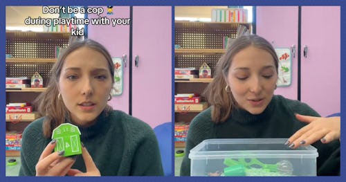 Of course, as their parents, we want to help educate them about the basics like colors, shapes, and all that. But pediatric speech and language pathologist Nicole Druckman, who posts on TikTok as @speecheasy has some advice: don’t be a cop during playtime with your kids.