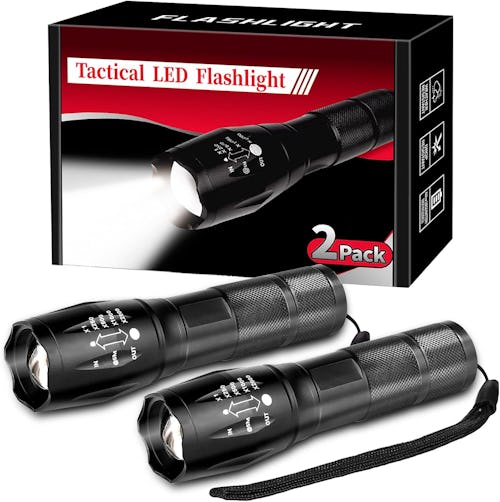 These best-selling flashlights have five modes: high, medium, low, strobe, and SOS. They also have adjustable focus with a rotating head so you can alter between a flood beam and a more targeted light. These flashlights are also waterproof with an anti-slip grip, making them great for all-weather use.