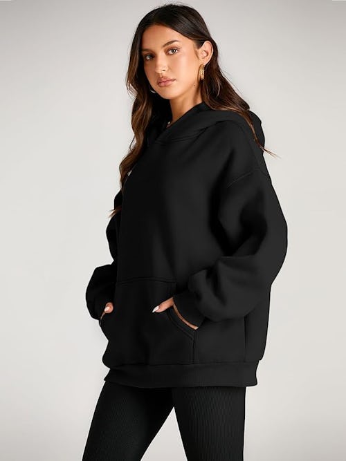 This hoodie has an on-trend, slightly oversized fit that makes it an easy go-to any time of year. This top is made from a cotton blend fleece that’s cozy yet breathable. It’s available in over 30 colors from neutral black to trendy fiery red. It’s comfort and chicness combined, so it’s no shocker it has bestseller status.