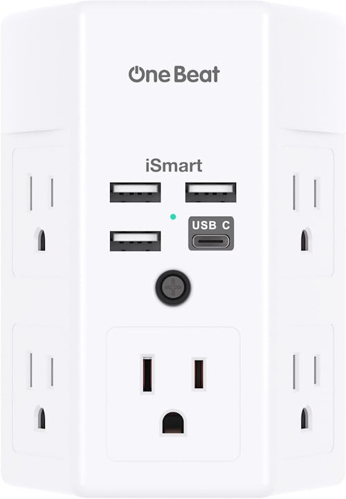 Power nine devices in one spot with this rotating surge protector. It offers six three-prong outlets, as well as three USB ports (two traditional and one USB-C). It has a 4.7-star overall rating on Amazon. It rotates 180 degrees for awkward spots around the home.