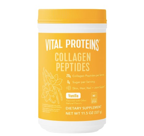 Add this collagen peptides powder to any hot or cold drink (including coffee or a smoothie) to help improve your hair, skin, nails, joints and ligaments, and tendons. It features a natural vanilla flavor that tastes great. And it contains zero grams of added sugar. This container has 14 servings worth.