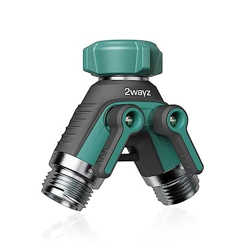 2WAYZ Dual Outlet Water Hose Splitter – Heavy-Duty Brass Y Connector, 360° Rotation, Easy Installation, Leak-Proof Design with Spigot Extender – Ideal for Garden, Washing Machines, Outdoor Faucets