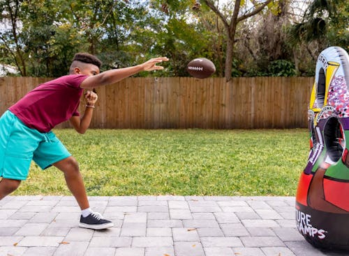 Turn your backyard into a football field with this inflatable sports target toss that provides hours of outdoor fun. The three-hole target is almost four feet tall and comes with two inflatable footballs to get the game started as well as a hand air pump. A water-filled base keeps the target stable and makes it pop back up when it’s knocked down. For space-saving storage, simply deflate and fold it down.