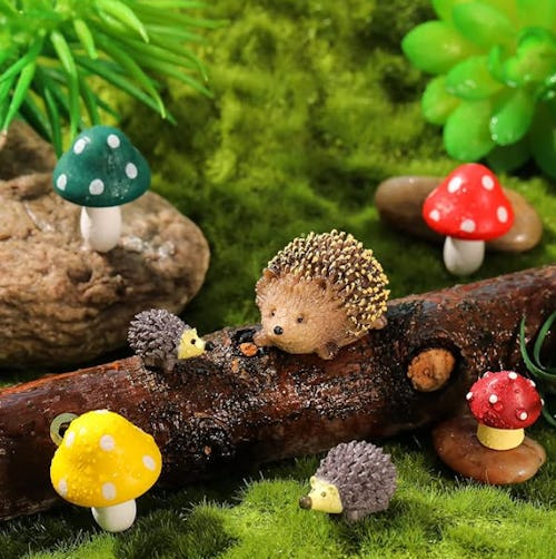 Bring a whimsical feel to your backyard and create a magical fairy garden with these woodland-themed resin accessories. The nine-piece collection includes miniature mushrooms and hedgehogs featuring vivid shapes, vibrant colors, and thoughtful details. They are waterproof and fade and breakage-resistant to withstand moisture and a range of temperatures.