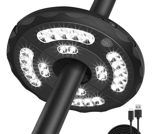 Make evenings out on the patio more enjoyable by illuminating the outdoor space with this snap-on umbrella light. The cordless light has built-in rechargeable batteries and offers three brightness modes to customize it for different occasions. It has an adjustable clamp to fit multiple widths of umbrella poles and conveniently doesn’t require any tools for installation.