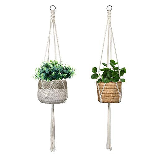 With these hanging planters, your greenery becomes a decor element. They’re made from 100% cotton cord with a macramé design for a natural touch. Each one holds pots up to 8 inches in diameter and hangs 40 inches long in total.