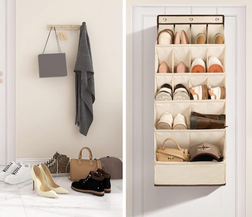 Don’t pile your shoes in a mound on the floor — this can damage your favorite pairs. Instead, grab this over-the-door organizer for smart storage. It has various-sized compartments to hold up to 18 pairs of shoes. Use the hooks at the top for hanging.