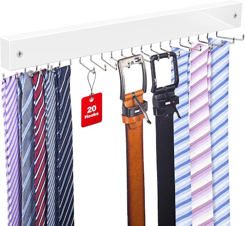For ties, belts, and other similar accessories, use this wall-mounted hanger for organization’s sake. It has 20 rotating hooks — adjust them vertically or horizontally as needed — that are nonslip, so nothing accidentally falls off. It’s simple to install, taking just minutes per Amazon reviewers.