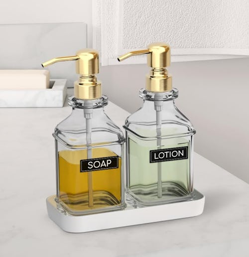 Products like hand or dish soap tend to come in ugly containers. However, these glass dispensers function just as well as the OG dispenser, yet they look way sleeker. They’re made from thick glass with a stainless steel pump head in a golden finish. Use the included labels to remember what’s what.