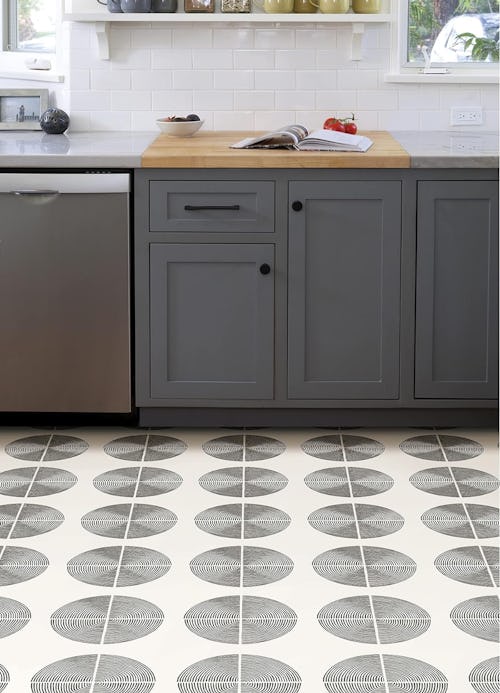 Don’t rip up outdated flooring: Cover it with this adhesive tile. It takes minutes to put in place (the tiles can be trimmed to fit), and the results are wow-worthy. This pack contains 10 mid-century modern-inspired tiles, all for just $12. They’re water resistant and washable.