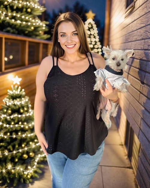 In a drape-y fit and lush, springy fabric, this hip-length tunic tank works on virtually any body type — and the sheer yoke with lace trim at the neckline is oh-so-sultry. While it comes in 20 chic shades, you can’t get hotter than classic black.