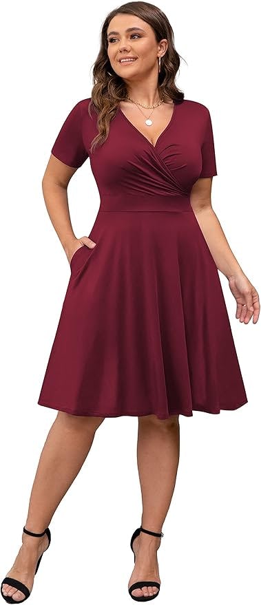 A hot outfit doesn’t have to be over the top, and this sexy but simple dress is proof; the short sleeves and slightly flared knee-length hem combine with a surplice neckline to produce an outfit that’s demure enough for the workplace while still creating a suggestive drape.