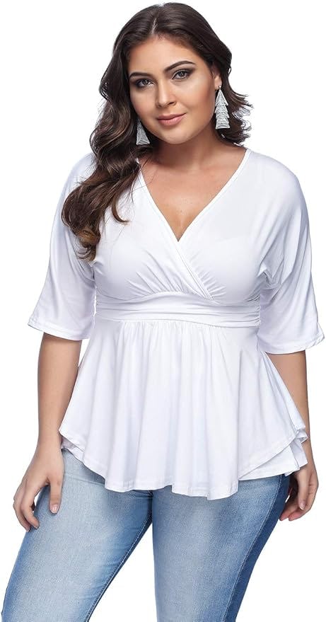 On days when you’re in a rush, this short-sleeved tunic makes getting dressed a breeze; designed with a crossover surplice neckline and a slightly flared hem, it looks stunning the minute you put it on, no tucking required. The stretchy fabric features strategically placed ruching to accent any cleavage you want to show, for an effortlessly sexy look that’ll turn heads.