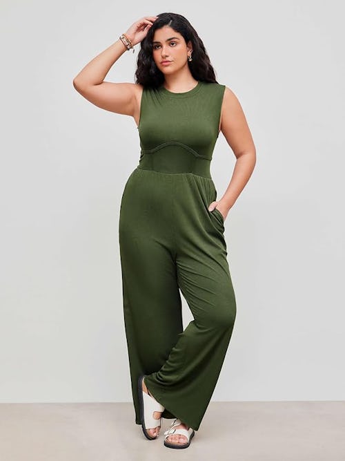 For days on the go when you still want to look sexy, this jumpsuit is a game-changer. In stretchy and soft fabric, it’s clingy through the tank bodice, with a drape-y wide leg — just as appropriate with sneakers for a day of errands as with heels for a dinner out.