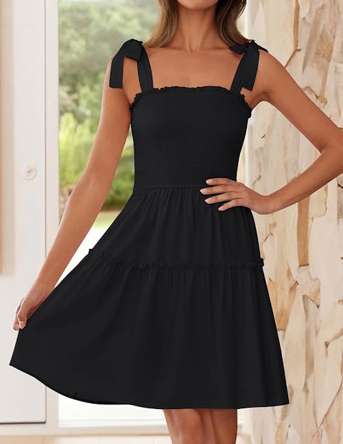 Looking for a foolproof dress for warm weather? Look no further than this square-neck mini dress. Its airy fabric billows out into a tiered skirt, its straps are tieable for style and adjustability, and its bodice is fully shirred so it fits like a glove. If black isn’t your vibe, you can also get it in your choice of 15 other solid shades, from ivory to bright orange.