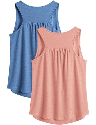 PINSPARK Racerback Tank Tops for Women Lightweight Yoga Shirt 2 Pack Workout Tanks Loose Fitting Gym Shirts Athletic XXL Blue/Coral