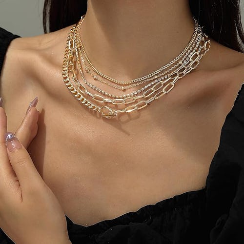 Boldly accessorize in one fell swoop with this five-piece necklace set. Each choker has a different design and is slightly longer than the last for a cascading stacked look, or you can style them separately depending on your outfit. They’re also plated in hypoallergenic 18K gold, and all but one has an extender chain so you can customize the fit.