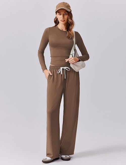 This two-piece lounge set contrasts a slim-fitting long-sleeve top with flowy, wide-leg pants (with pockets). Despite its comfy fabric, it actually looks like a coordinated outfit — especially when accessorized with a cardigan, a cute bag, or some platform sneakers. “Obsessed. I absolutely LOVE this set,” wrote one reviewer who “would get it in every color.”