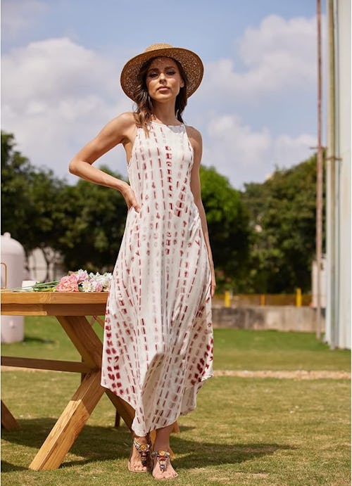 Throw on this sleeveless halter dress with your go-to footwear, and you’ll look chic with minimal effort. The fit is flowy, the fabric is soft and stretchy, and the high-cut neckline keeps the straps on your shoulders. Add in the fact that it’s lightweight and wrinkle-resistant, and it’s no wonder reviewers called it “the perfect travel dress.”
