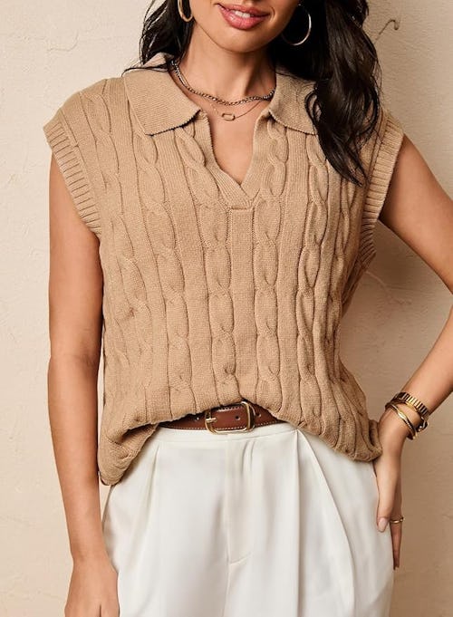 A Cableknit Sweater Vest For Preppy ‘90s Vibes