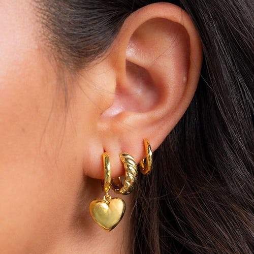 Get three for less than the price of one with this dainty earrings set, which includes three pairs of hoops: puff hearts, croissants, and plain. You can mix and match them depending on your outfit, or wear them in multiple piercings for a stacked look. They’re hypoallergenic for sensitive ears and plated in 14K gold for a realistic shine.