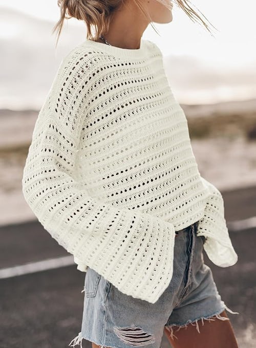 With its bell sleeves, hollow-out texture, and dropped shoulders, this crochet sweater has all of this season’s most popular trends. Layer it over a bralette or a tank for more coverage. “It’s lightweight but still cozy, and it works well with jeans, skirts, or shorts,” wrote one reviewer who loves “how versatile and stylish it is.”