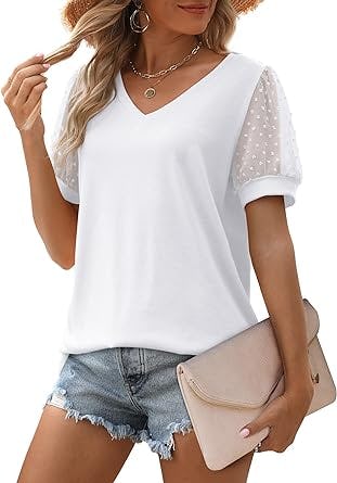 Take puff sleeves and add them to a V-neck — you’ll get this adorable top. The sleeves are made from sheer mesh with Swiss dots for an airy, romantic vibe. The longer length is perfect for tucking into jeans or work trousers.