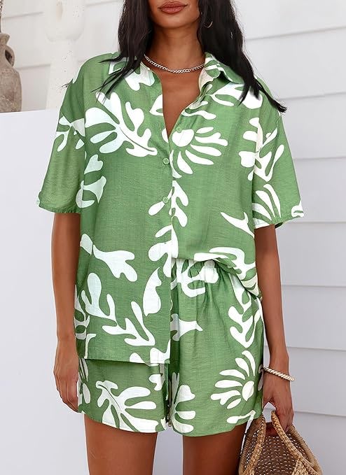 Ditch the serious vibes and get playful in this two-piece shorts set. It includes a button-down with drop shoulders and shorts with an elastic-drawstring waist. After you pick out your favorite print, you can wear this on vacation, while running errands, or even to dinner — just add cute jewelry and sparkly sandals.