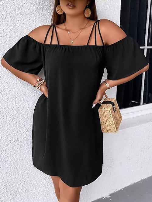 A Stunning Dress With A Strappy Off-The-Shoulder Look