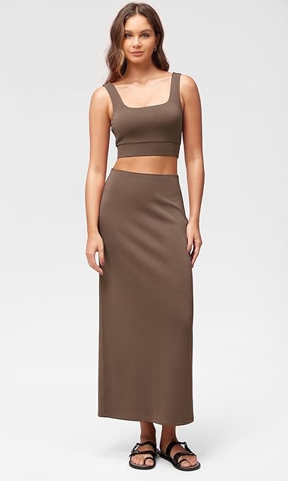 The beauty of this two-piece skirt set is that you can mix and match it with everything in your closet — try pairing the skirt with a knotted button-down or satin cami. Of course, these two items work together beautifully as well, creating an instant, put-together look. Made from a polyester and elastane blend, the top has a snug, cropped fit, while the high-waisted skirt boasts an A-line silhouette that falls to the ankles.