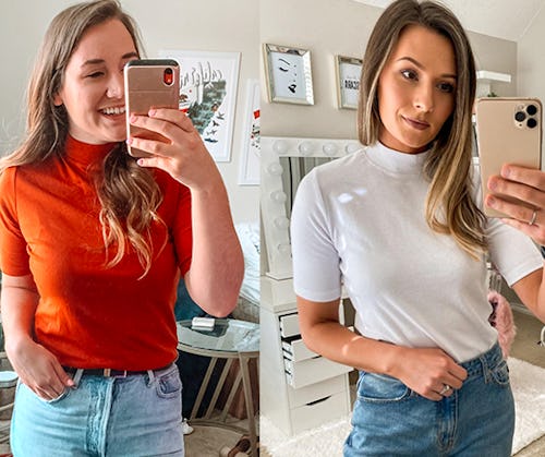 It can be hard to pull together an outfit that feels nice but casual — but this mock-neck top does it with ease. Made from a cotton and polyester blend, it’s fitted but not skintight, making it easy to tuck in. The sleeves reach to the elbow — ideal for those in-between seasons.