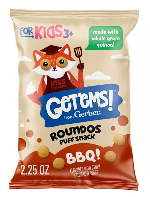 - Get’ems! Roundos Puff Snacks: These puffs are made with whole grain quinoa and calcium to support strong bones and come in four flavors: Barbeque, Pizza, Apple Cinnamon, and Carrot Ranch.