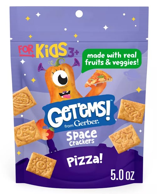 - Get’ems! Space Crackers: A crunchy cracker that’s blasting with flavor and fuels kids with 40% of their daily iron and vitamin E to support brain development. These crackers come in Maple, Pizza, and Parmesan varieties.